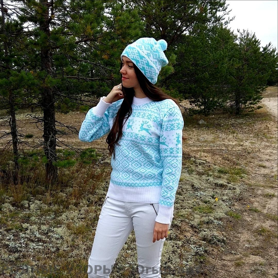 "Олень и солнце" №1/ джемпер/ аквамарин