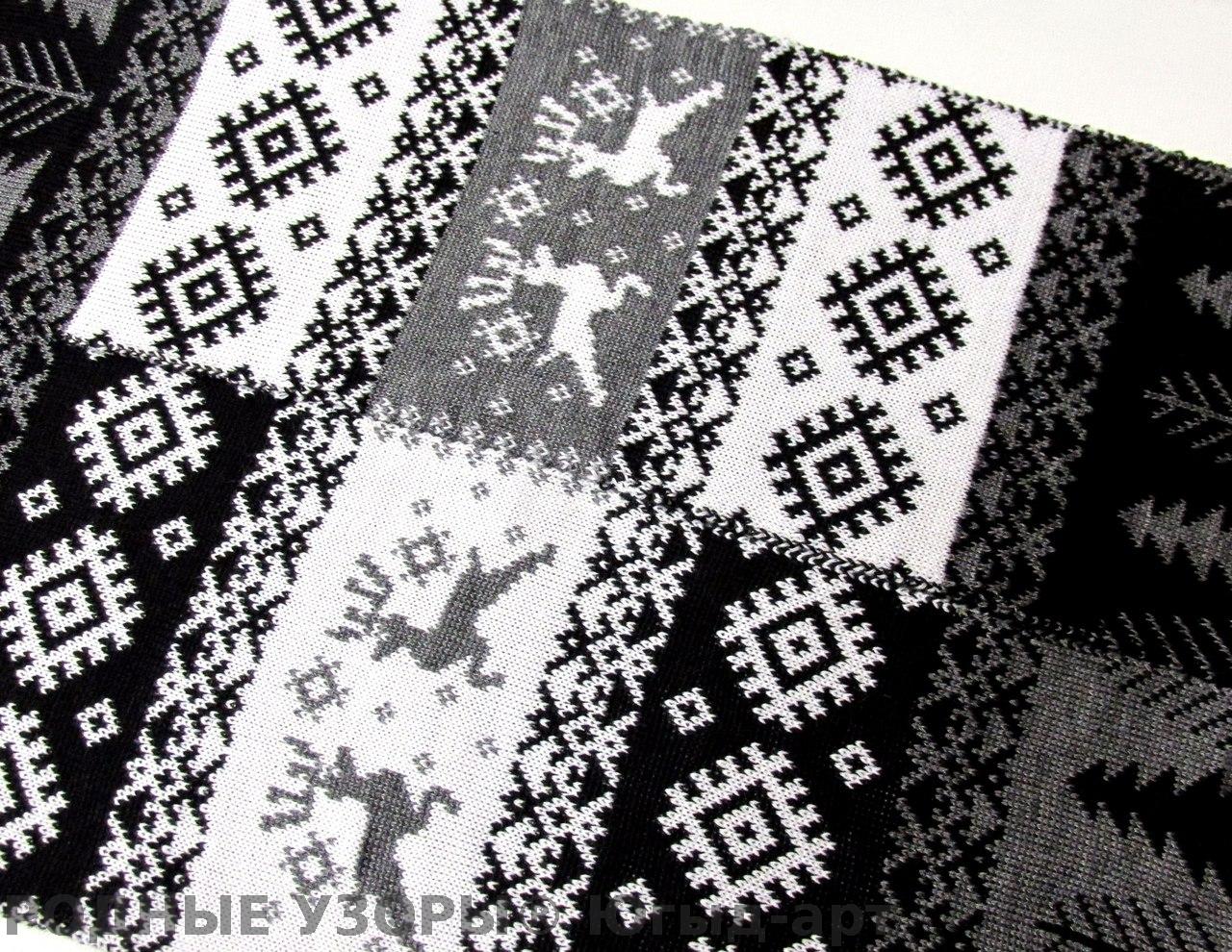 Шарф с Ёлочками, Оленями и обережным орнаментом - "цепляющий" (притягивающий) счастье, удачу и благополучие