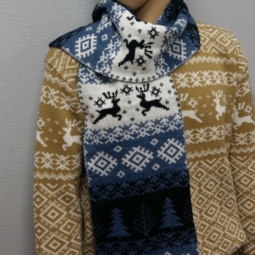 На этом шарфе - олени бегут мимо елочек, и падают снежинки в виде оберегового северного орнамента. авторская разработка Туровой Светланы и Нестерова Сергея.